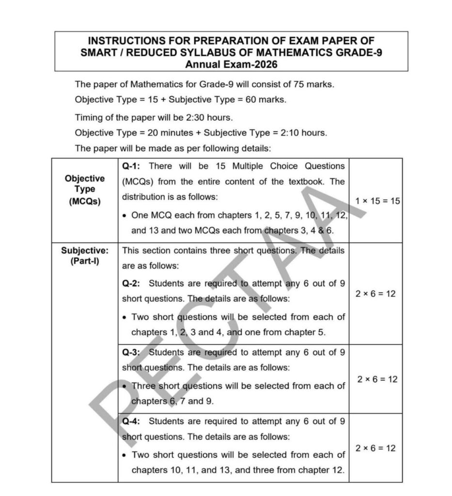 نئی 9ویں جماعت کی ریاضی کی پیٹنگ سکیم 2026 پی کٹا کی طرف سے جاری کر دی گئی ہے۔ اس سکیم کو فالو کریں، اسی کے مطابق آپ کا بورڈ کا پرچہ بنایا گیا ہے۔