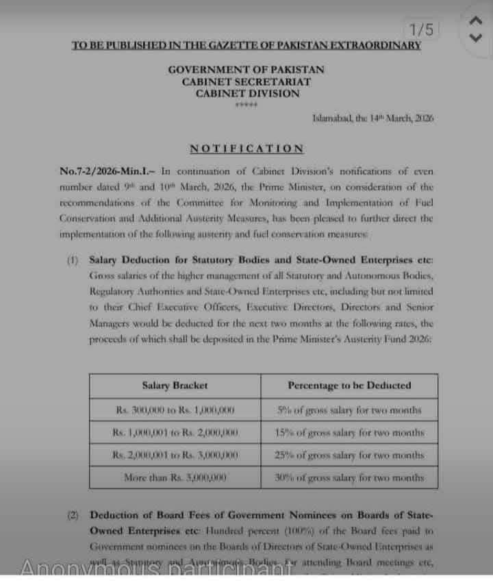 - 30 لاکھ سے زائد والے افسران سے 30 فیصد کٹوتی کا اعلان دو ماہ کیلئے کیا ہے