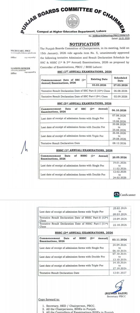 Official exam and Result Schedule All Punjab Boards10th Exam